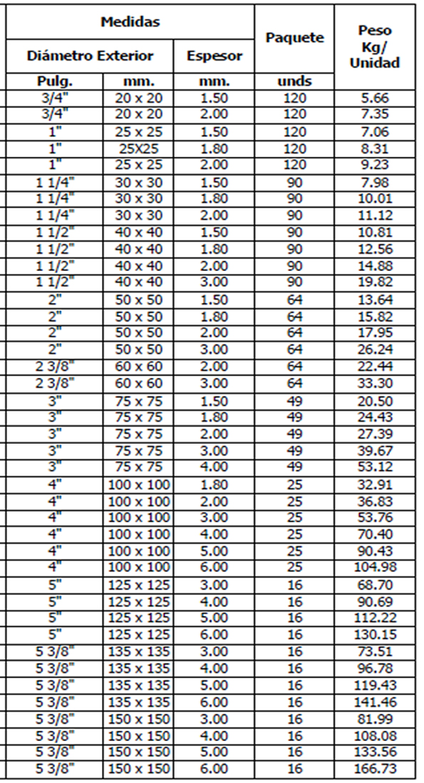 Tubo de acero estructural con forma cuadrada, norma de fabricación NTE INEN