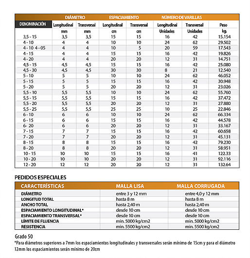 Panel electrosoldado formado por varillas lisas o corrugadas en varios diámetros dispuestas perpendicularmente formando recuadros regulares de 10 a 50 cm. Participa de las características físicas y mecánicas de la varilla trefilada.