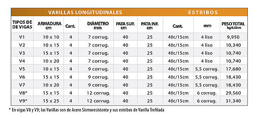 Se utiliza como refuerzo del hormigón armado en pórticos, columnas, vigas y postes.